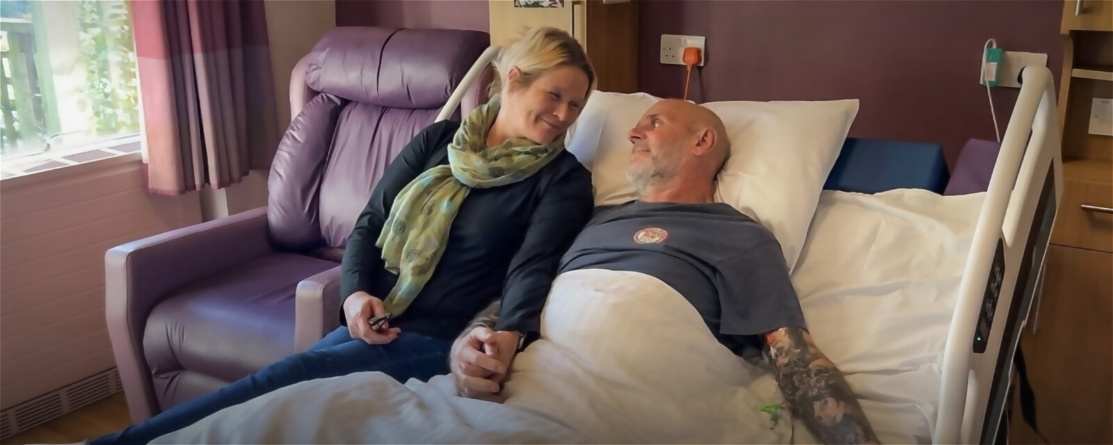 My partner Darren came to the Hospice as a patient after months of me caring for him at home. I remember sitting by his hospital bed, holding his hand through the rails. I’d say goodnight from inches away, but it felt like miles we were miles apart.